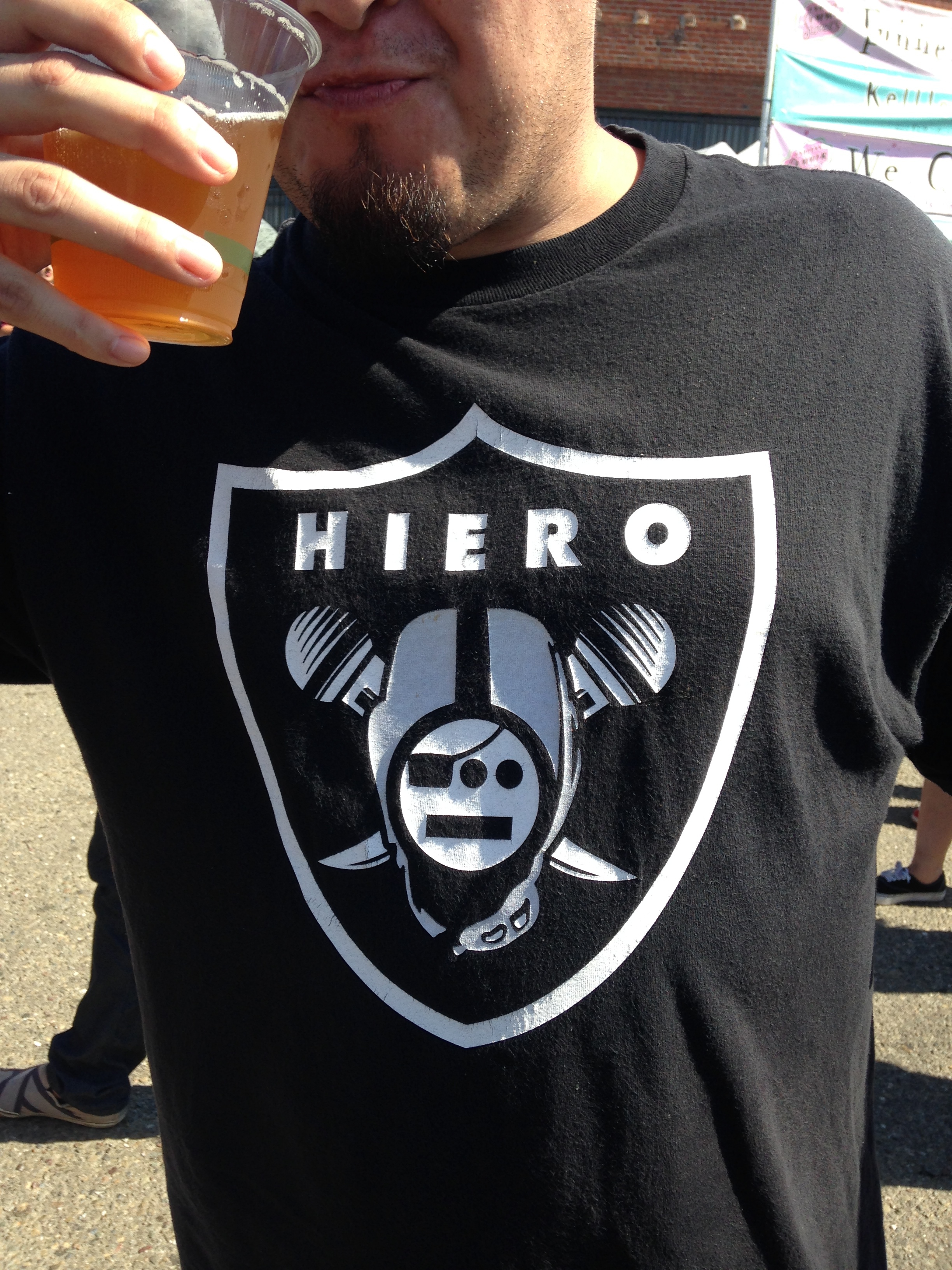 Hiero IS the truth. Straight up, this day was a celebration of hip-hop.Oh the weed was burning strong all day! You could even buy some ganja treats from The Green Team if you flashed your medicinal card.Every member of Souls of Mischief was there representin’ Hieroglyphics Crew. The Festival ended with them playing the CLASSIC “93 ’til Infinity.”The Warriors fans were in full force, after all, it’s Oakland. As a Raiders fan, i fucking LOVE this shirt. The Raider nation was def representin’!And waddaya know? So were Niner fans! I like that…this fest was all-encompassing and everyone was welcome. No matter what their affiliation, cultural background, etc… It was a peaceful affair through and through.Linden Street Brewery manned the beer area in front of their brewery which was incorporated into the festival. They were pouring the new Hiero Glo beer. It was a thick and cloudy pilsner. Loads of flavor. It was sweltering hot all day and i loved it.Like any good music festival, there were bros in basketball jerseys. This Rodman one took the cake.Hey…you can be an old school hip-hopper, an underground cat, or even the Trap heads. Hiero Day was for everyone.And if you needed any more evidence that this was a festival about different people coming together, here it is.And you just felt like you were in Oakland. It was dope.Me too dogg. And Hiero Day reminded me so much about how some of it is still alive.